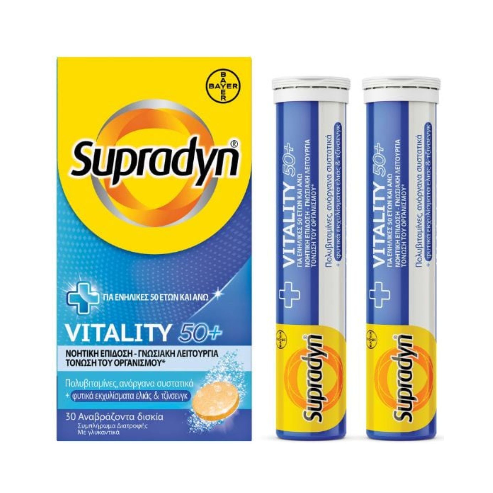 Supradyn Vitality 50+ 30 αναβράζοντα δισκία Αριθμός Γνωστοποίησης ΕΟΦ: 100490/23.9.2022. Το προϊόν δεν υπόκειται σε διαδικασία αδειοδότησης.
