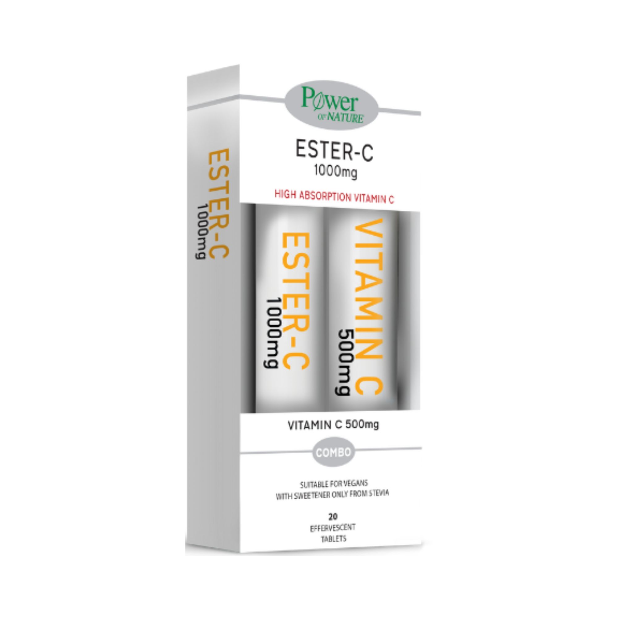 Συμπλήρωμα διατροφής σε αναβράζοντα δισκία με γεύση ροδάκινο-φρούτο του πάθους και με γλυκαντικό από το φυτό στέβια. Περιέχει βιταμίνη C σε εστερική μορφή, μη όξινη, υψηλής απορρόφησης. Η βιταμίνη C συμβάλλει στη φυσιολογική λειτουργία του ανοσοποιητικού συστήματος, στην προστασία των κυττάρων από το οξειδωτικό στρες, ενώ αυξάνει την απορρόφηση του σιδήρου.* Συμβάλλει, επίσης, στο φυσιολογικό σχηματισμό του κολλαγόνου για τη φυσιολογική λειτουργία των αιμοφόρων αγγείων, των οστών, των χόνδρων και του δέρματος, στη φυσιολογική λειτουργία του νευρικού συστήματος και των μεταβολικών διεργασιών που αποσκοπούν στην παραγωγή ενέργειας.*