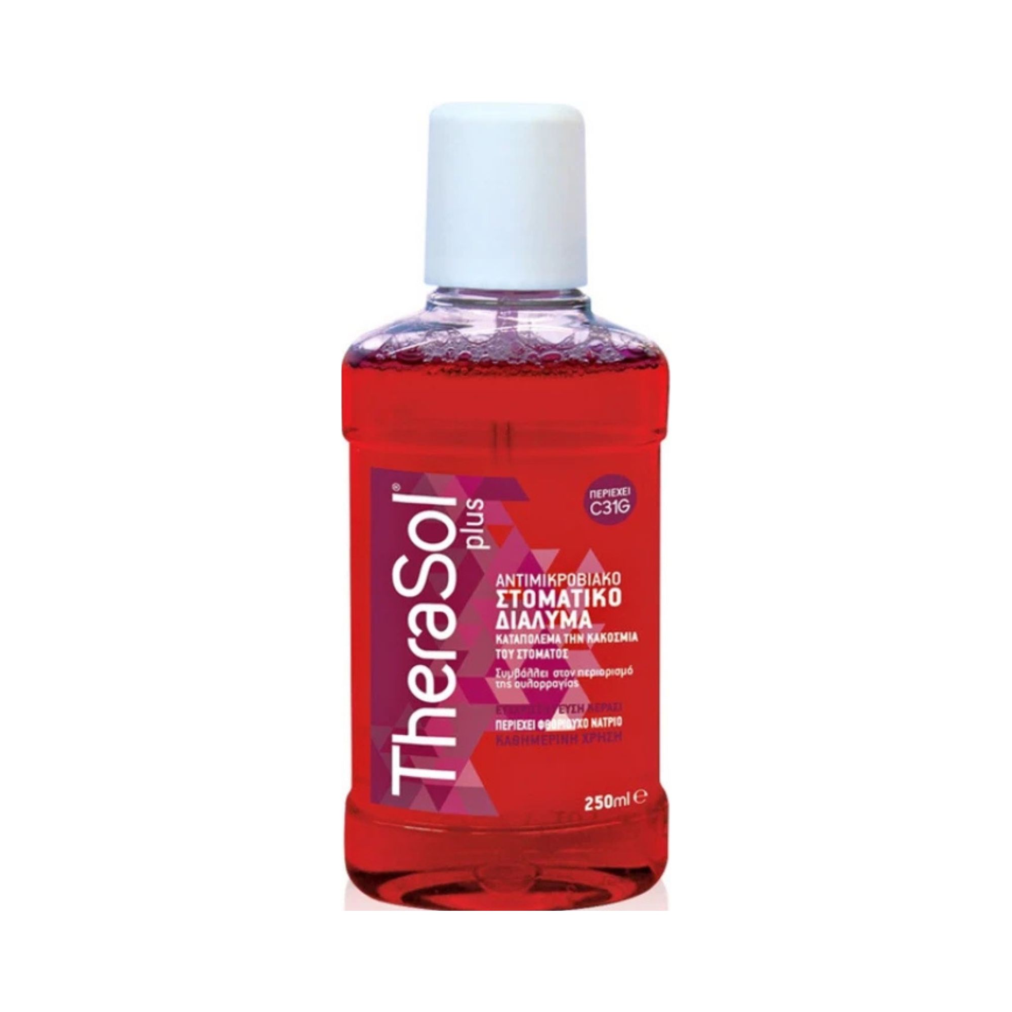 Περιέχει C31G, ένα δραστικό συστατικό αποτελεσματικό όσο και η χλωρεξιδίνη κατά: των μικροοργανισμών που αναπτύσσονται στην στοματική κοιλότητα, στην καταπολέμηση της βακτηριακής πλάκας, του ερεθισμού των ούλων και στον έλεγχο του μικροβιακού πληθυσμού, χωρίς να προκαλεί χρώσεις.