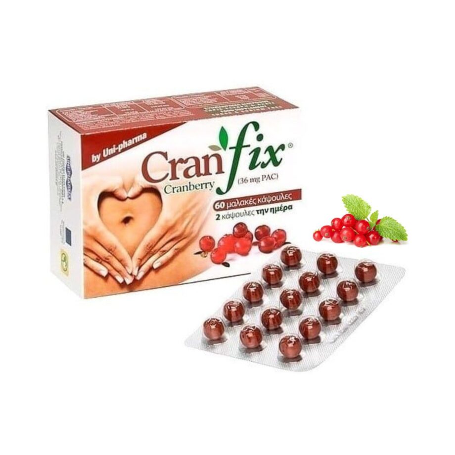 - To Uni-Pharma CranFix (Cranberry) 36mg PAC, χάρη στο πλούσιο σε προανθοκυανιδίνες (PACs) εκχύλισμα cranberry του, αναστέλλει την ικανότητα των βακτηρίων E.coli να προσκολλώνται στο ουροποιητικό επιθήλιο.